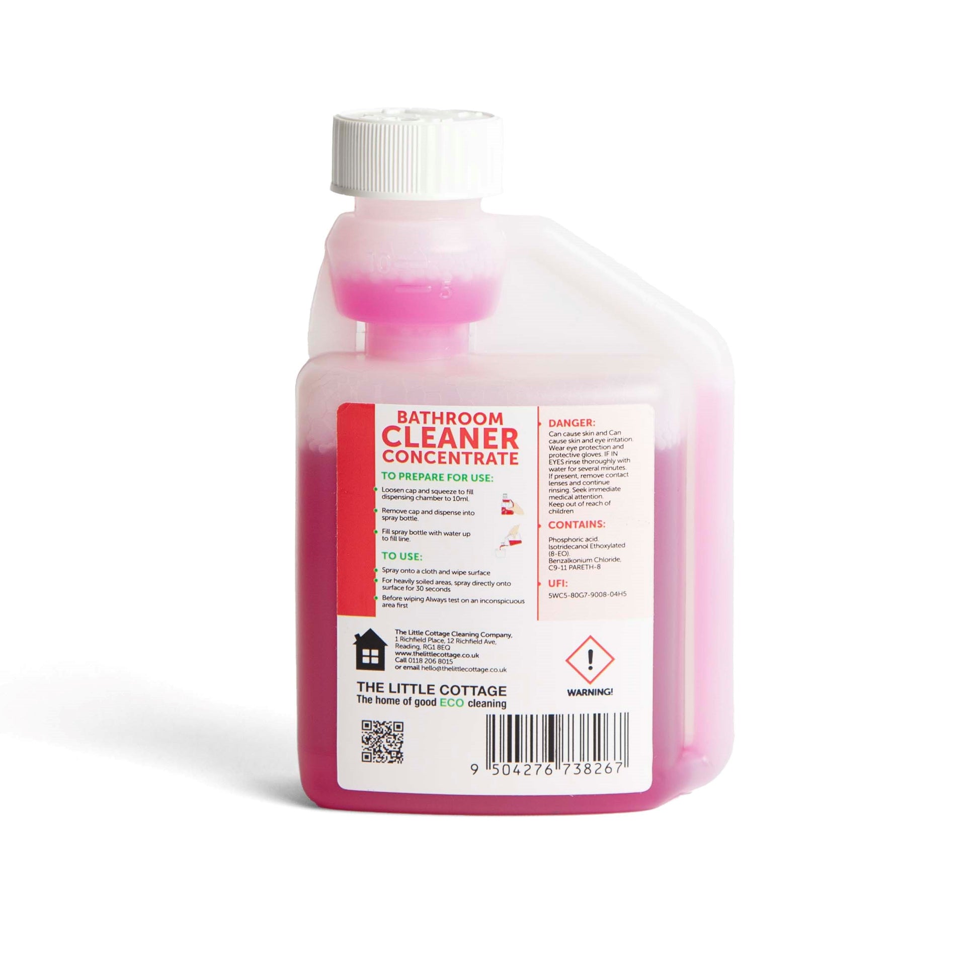 25 dose Eco Bathroom Cleaner Concentrate. Removes 99.99% of bacteria, plant based, made in the UK and biodegradable. Makes 25 spray bottles. By The Little Cottage Cleaning Company